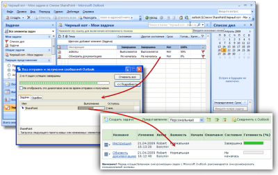 Соединить с Outlook! Не обращайте особого внимания на сообщения MS Outlook и просто соглашайтесь с ними, поскольку они в большинстве своем информационного характера. К примеру, появится на экране вопрос-предупреждение: <Подключить к Outlook папку "SharePoint" Календарь?> - смело жмите кнопку <Да>. Почему? Да потому что интеграция эта выполнена в полном соответствии со спецификацией корпорации Microsoft и ни каких проблем быть не может!